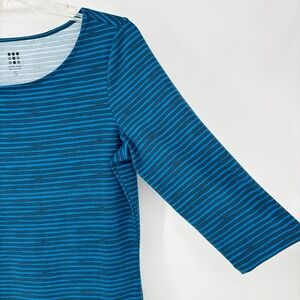 Title Nine Blue Gray Striped 3/4 Sleeve Athletic Stretch Top Size S