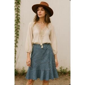 Vintage Y2K DKNY Jeans Denim A Line Patchwork Flowy Skirt L (10?)