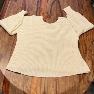 Tommy Bahama Cream V Neck Ribbed Knit Sweater M/M Balloon Sleeve Cotton Blend