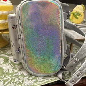 Glittering silver Disney Parks x Loungefly logo label plate