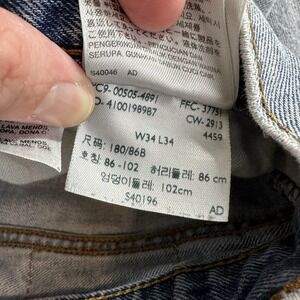 Levi's Mens 505 Blue Jeans Straight Leg Regular Fit 34x34 (33x30) Distressing