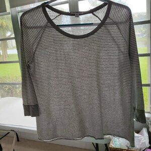 James Perse Striped 3/4 Sleeve Top Gray + White stripes Ragland Cut Size 2 (M)