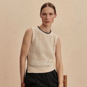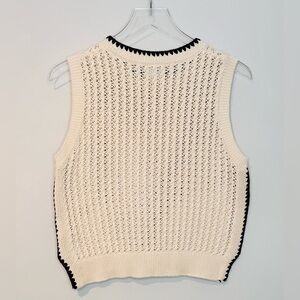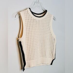 Varley Delaney Knit Beige Birch Black Trim Vest Top Sweater Shirt.