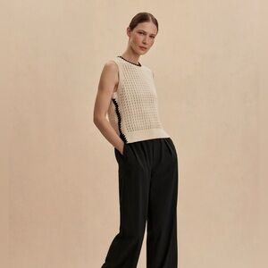 Varley Delaney Knit Beige Birch Black Trim Vest Top Sweater Shirt