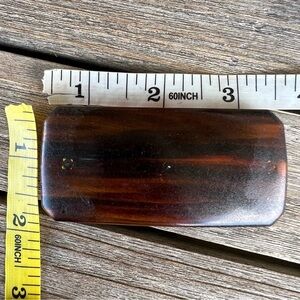 Vintage Brown Tortoise Shell Plastic Hair Clip Barrette. Made in France. Rectangular with clipped corners.