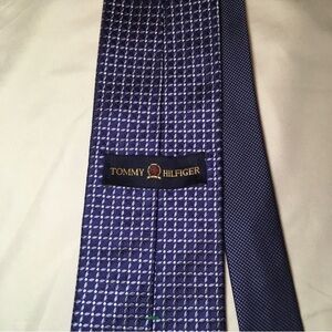 Stylish navy tie with white geometric pattern. Ideal for formal events.
