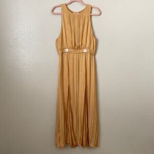 Shona Joy Dress Womens Size 8 Yellow Gold Split Skirt Midi Slit Cocktail Evening