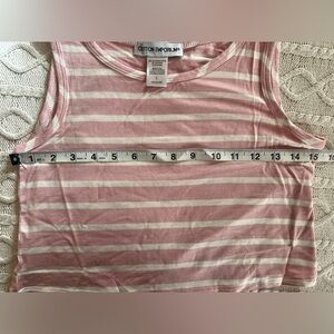 NWT brand new! Rayon, spandex blend tank by Cotton Emporium. Salmon & white horizontal stripes. Sleeveless, cropped. Measurements in photos. Soft & Comfy. Lightweight. Juniors Size Large. Smoke Free Home