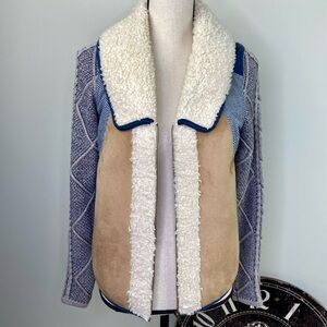 Anthropologie Saturday Sunday Sherpa knit faux suede sweater zip jacket size XS