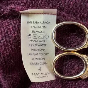 This Peruvian Connection sweater dress is a beautiful addition to any wardrobe. The long sleeves and knee-length hemline offer a classic look, while the alpaca, wool, and nylon blend provide softness and warmth. The dress comes in a stunning maroon color and features a solid pattern. It is perfect for any occasion and can be dressed up or down. The size is medium, making it a great fit for most women. With its timeless style and quality materials, this sweater dress is a must-have for any fashion-conscious individual.