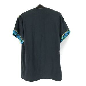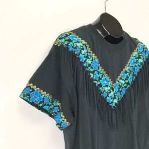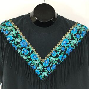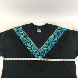 Vintage Hanes Floral Fringe Short Sleeve Tee Adult Size XL Black Embellished 90s