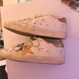 Authentic GOLDEN GOOSE Old School Low Top Velcro Sneakers - White/Gold - 37
