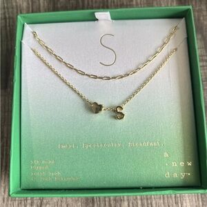 14K Gold Dipped S Initial with Heart Chain Necklace Jewelry New Boxed Gift Mom