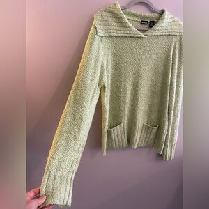 Northcrest Lime Green Fuzzy Collared Sweater With Pockets