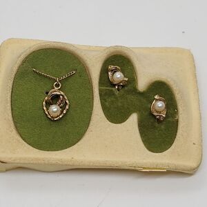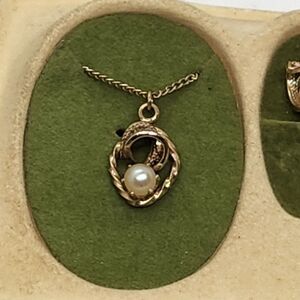 Vintage Gold Tone Filigree Faux Pearl Necklace And Clip-on Earrings