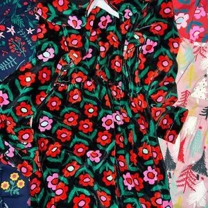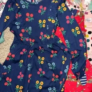 A vibrant collection of kids' clothing featuring playful patterns and designs. Includes dresses and tops in various colors and prints. This is a steal! We are moving and unfortunately my daughters won’t wear dresses anymore! Makes me so sad. Most of the dresses have tags or have never been worn. Sizes range from 8-12. Only one dress is 12 I believe. Let me know if you have any questions. One dress alone was $85! There are a few sweatshirts and shirts mixed in- Mini Boden
