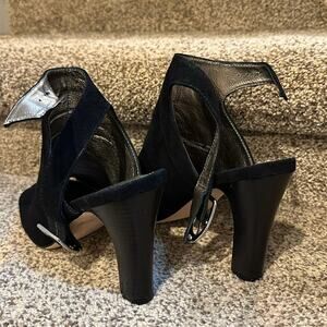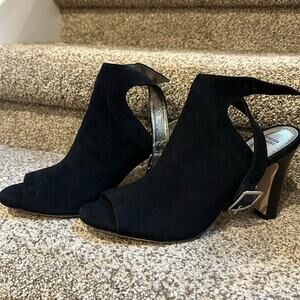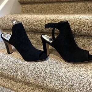 Johnston and Murphy Brand new in box, size 9 open toe bootie black kid suede heel