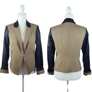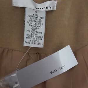 WD NY Women's Tan Faux Leather Sleeve Blazer Jacket Size S NEW