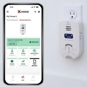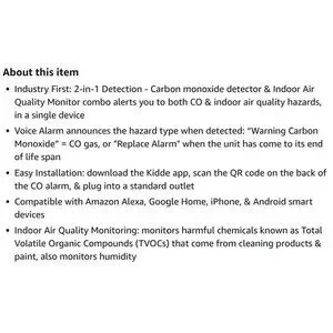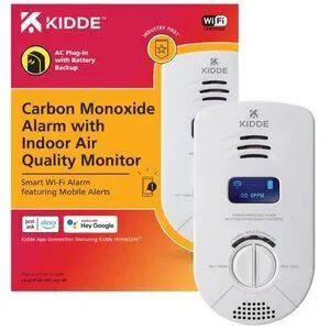 Kidde Carbon Monoxide Alarm and Indoor Air Quality Monitor & Battery Backup, WiFi certified amd works with the Kidde HomeSafe app that works with Alexa, Google Home and more to provide you with real time updates and alerts.