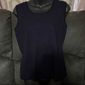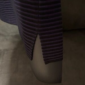Stylish Ming Wang cardigan and sleeveless matching sweater.. Bold purple and black pattern. Perfect for layering.