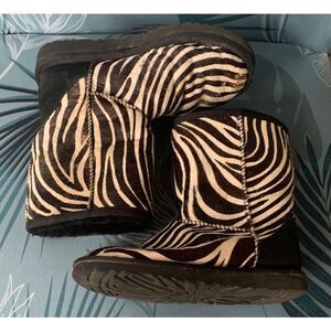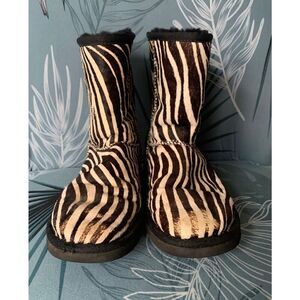 UGG Classic Short Exotic Zebra Print Shearling Sheepskin CALF HAIR Boots sz 6