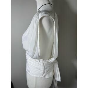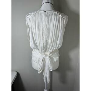 Free People Boho Tie V Neck White Sleeveless Blouse Large