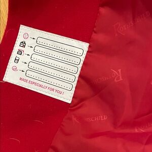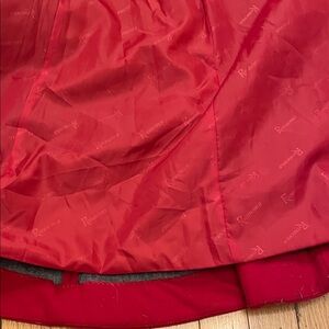 Stylish red coat featuring luxurious black trim on the hood and cuffs. Perfect for a chic winter look. size tag says 8 but a really small 8 maybe fits a xxs-xs
