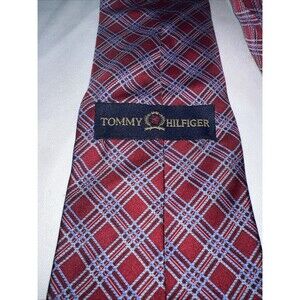 Vintage: Tommy Hilfiger Mens Tie, Red White Check Pattern, Classic 2 Tone