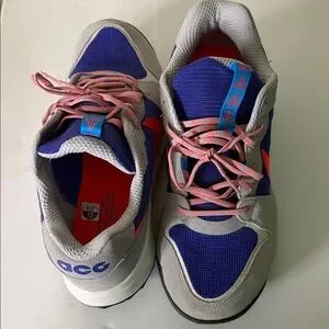 Stylish Nike ACG athletic shoes. Features blue mesh with gray overlays. Pink laces add a pop of color. Perfect for sports and casual wear. Size 12 $56