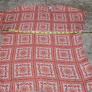 Banana Republic Elegant blouse with intricate orange and white design. Ideal for versatile styling. 100% polyester