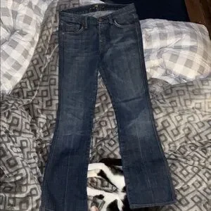 Chic dark blue flare jeans. Stylish and versatile. Perfect for any wardrobe.(inseam 27 inches)