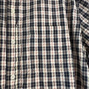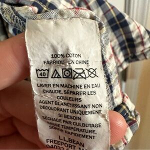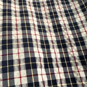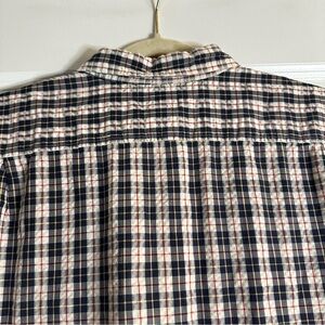 Classic L.L. Bean men’s short sleeve button-down shirt in a timeless plaid pattern of navy, cream, and red. Made from 100% cotton, this shirt is breathable and comfortable, featuring a slightly fitted cut for a modern look. Includes a front chest pocket and button closure. Size XL Regular. In great pre-owned condition with no major flaws noted.