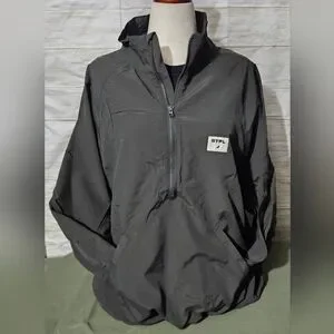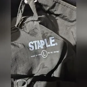 Sleek dark ggreen windbreaker by Staple. Features a half-zip design and front pockets. Ideal for casual wear.