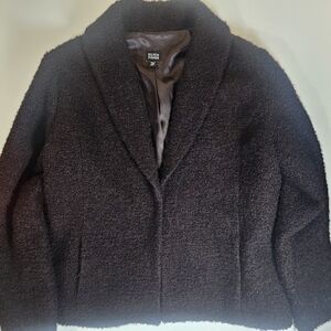Eileen Fisher Womens Jacket Large Brown Wool Blend Satin Lined Winter Outerwear