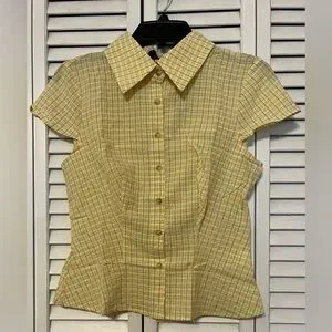 NWT Women’s Cider Tartan Yellow Check Pattern Button Up Shirt Sz S