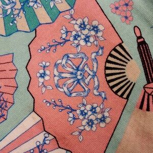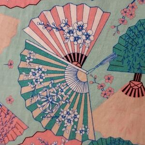 Add a touch of vibrant retro charm to your wardrobe with this adorable blouse from Voodoo Vixen! This top features a fun and colorful Asian-inspired fan print in shades of mint green, coral, white, and blue, perfect for a vintage-inspired or rockabilly look.