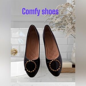 Fenghonseson black flats with gemmed buckles 39 (US 7.5 circle golden design
