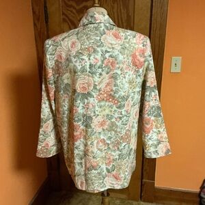 Beautiful vintage floral print blazer featuring a soft romantic rose pattern in muted pastel tones. Designed with a tailored yet relaxed silhouette, classic lapels, and front pockets for an effortless, wearable vintage look. Perfect for layering over denim, dresses, or workwear, this jacket adds a cottagecore-inspired touch to any outfit. A timeless statement piece with feminine, romantic appeal.