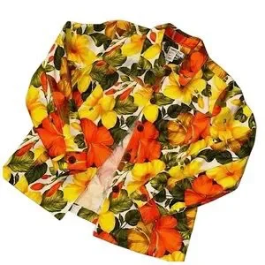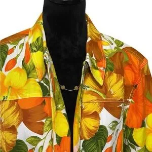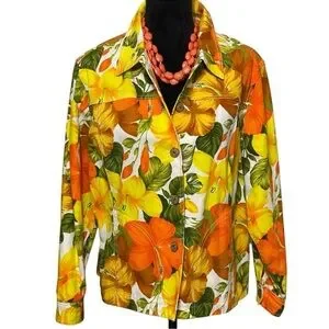 Brighten your wardrobe with this vibrant retro Coldwater Creek floral jacket. Made from 100% cotton. Measures 23 inches in length. Arm measures 23 inches. Pit to pit measures 23 inches. Excellent preowned condition.