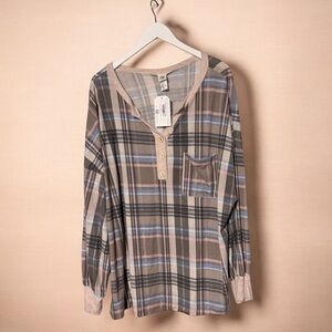 Sew In Love Plaid Henley Top Size 2X NWT