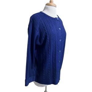 Vintage Sara Morgan Cable Knit Button Down Cardigan Sweater Women's L Blue