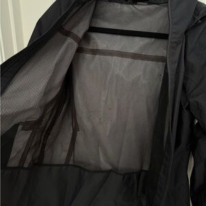 Durable and stylish North face black jacket in brand new condition. Features a hood and zip closure with dryvent technology.