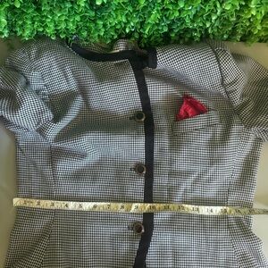 Vintage 80s Heathers Black and White Houndstooth Karen Ellis Brand Petite Suit Jacket Size Women's 10 With Red pocket square. Button closure and has shoulder pads