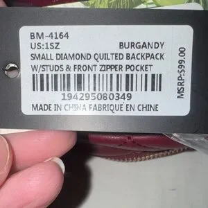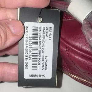 Badgley Mischka Burgundy Quilted Mini Backpack with Gold Accents