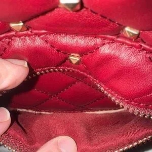 Stylish burgundy quilted backpack featuring elegant gold accents. Perfect for everyday use with a touch of sophistication.