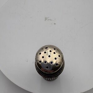 A pair of vintage cobalt blue glass salt and pepper shakers featuring ornate silver plate holders. Each shaker showcases a vibrant blue glass body encased in a decorative metal overlay with intricate cutouts and banding. The tops are fitted with silver plate shaker lids, each pierced with multiple holes for dispensing. Perfect for adding a touch of vintage elegance to your dining table or as a unique decorative accent for your kitchen or curio cabinet. Ideal for special occasion dinners or everyday use.