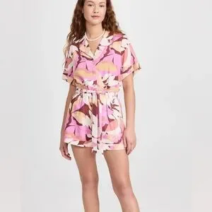 Shorts and top in adorable tropical print. In excellent condition. See photos for measurements. Waistband on shorts is very stretchy. (Interior label on shirt has been cut out but is intact on the shorts.