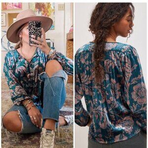 NWOT Anthropologie Faustine Velvet Peasant Blouse X Small XS