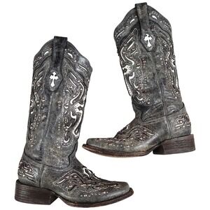 Corral Vintage Cross Square Toe Cowboy Western Boots 6.5M Cross Studded Bling