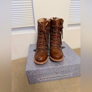 Freebird Burrow Cognac Tan Lace-Up Booties 8 NEW